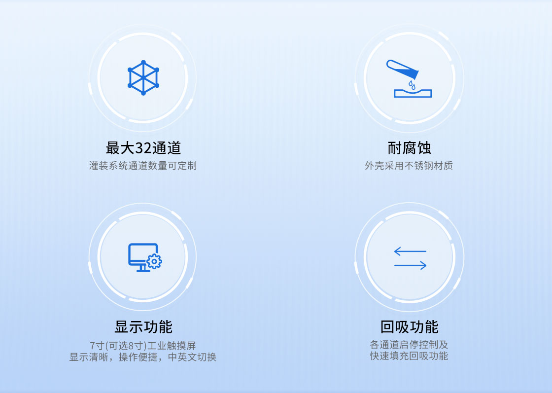 1.可擴展32通道,灌裝系統(tǒng)通道數(shù)量可定制
